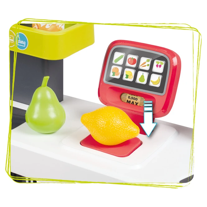 - Lieferumfang: 1 x Kaufladen mit Einkaufswagen und Spielzubehör