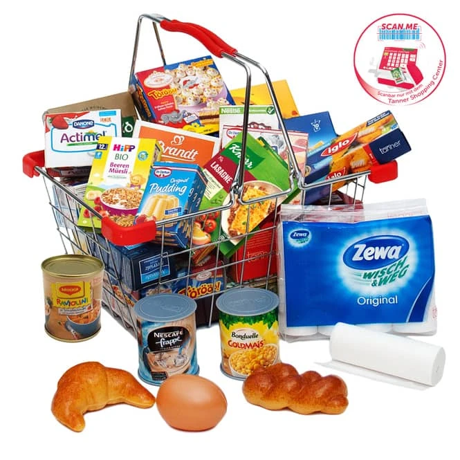 - Lieferumfang: 1 x Küchenkorb aus Metall, gefüllt mit hochwertigen Artikeln für Spielküche oder Kaufladen